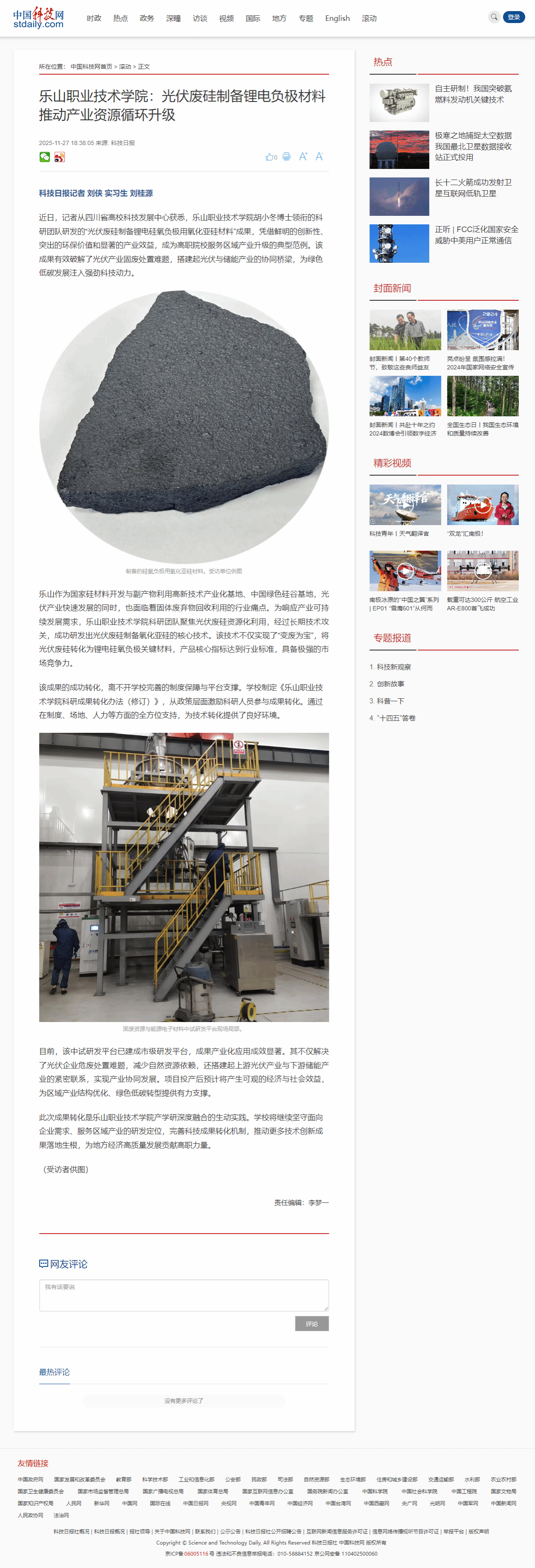 中国科技网:伟德国际victor1946——光伏废硅制备锂电负极材料 推动产业资源循环升级
