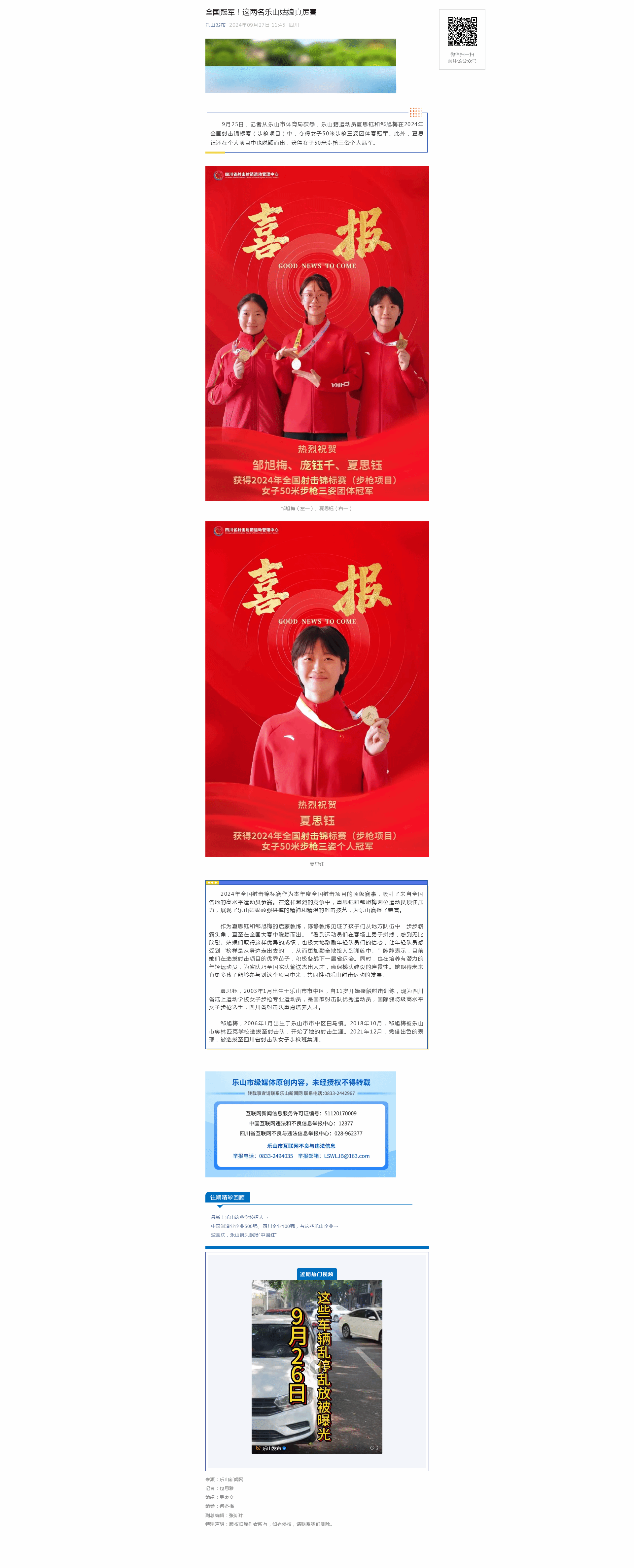 乐山发布:全国冠军!这两名乐山姑娘真厉害