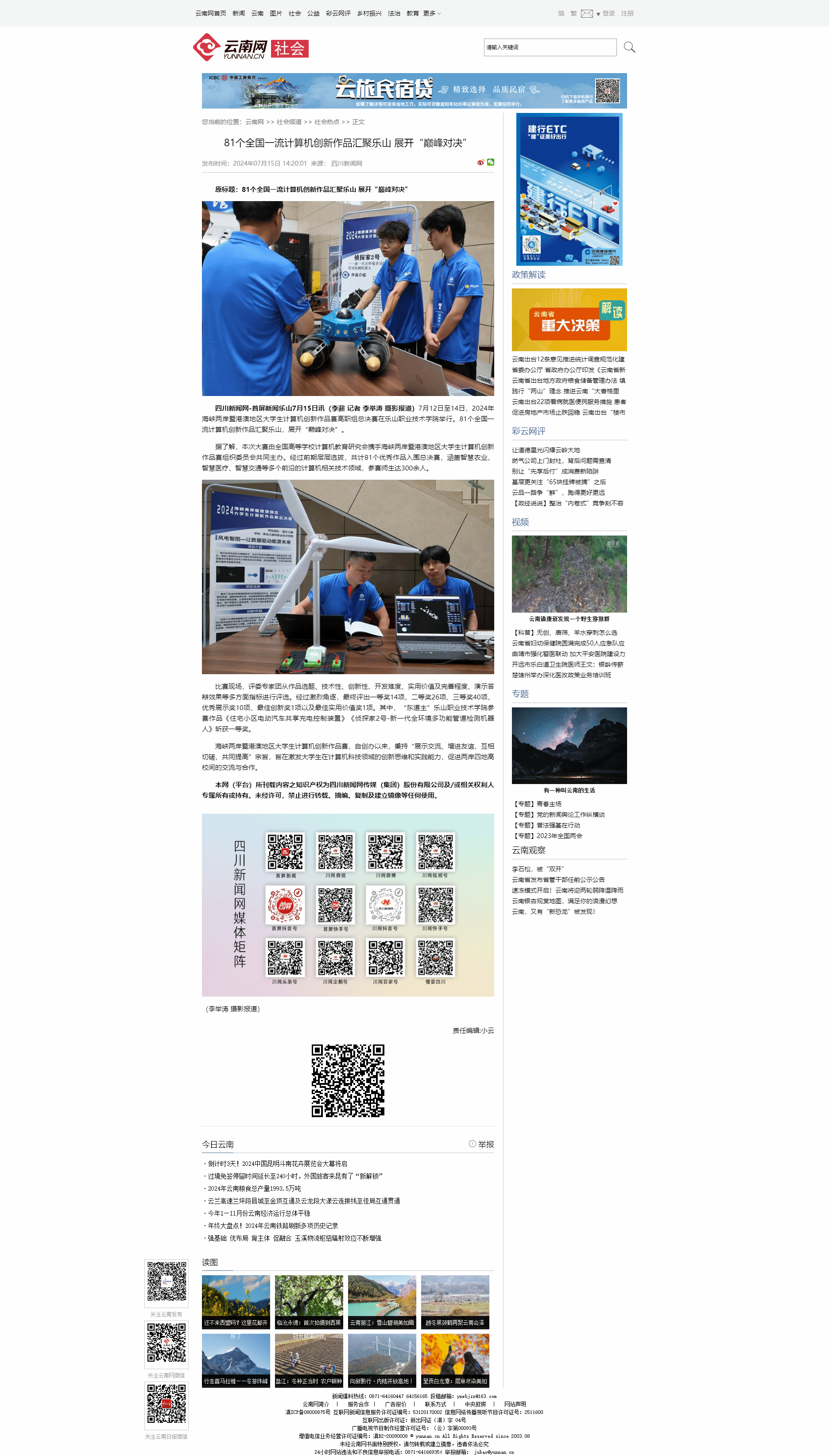 云南网:81个全国一流计算机创新作品汇聚乐山 展开“巅峰对决”