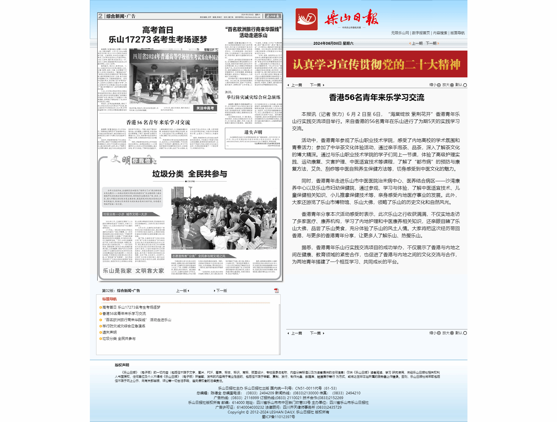 无限乐山:“海棠绽放 紫荆花开” 香港56名青年学生来乐学习交流