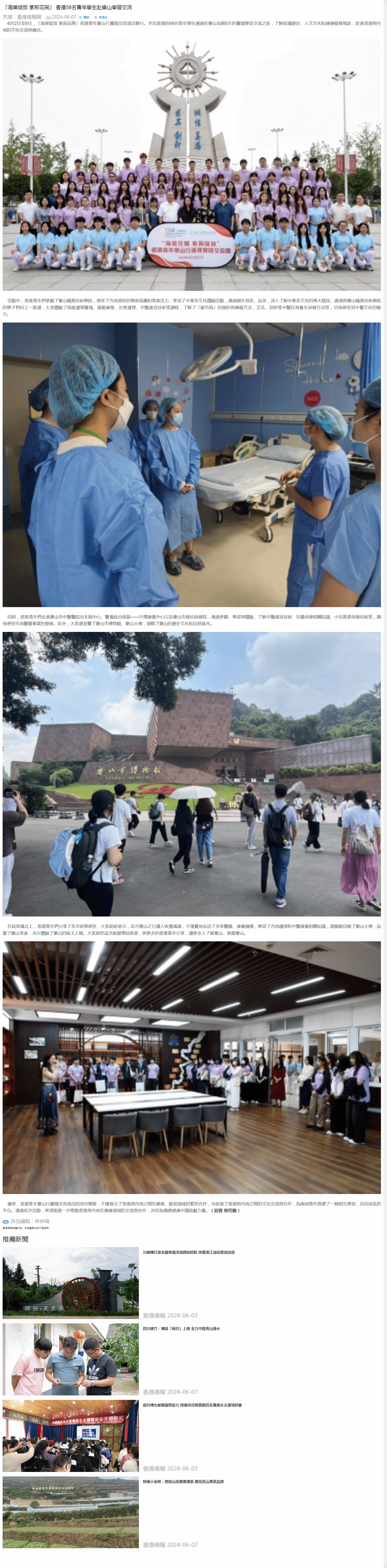 香港商报网:「海棠綻放 紫荊花開」 香港56名青年學生赴樂山學習交流