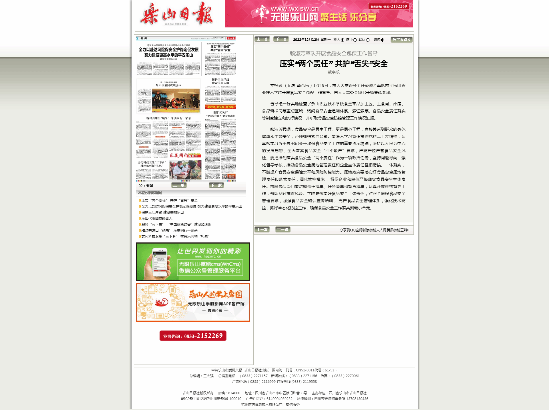 乐山日报:赖淑芳率队开展食品安全包保工作督导