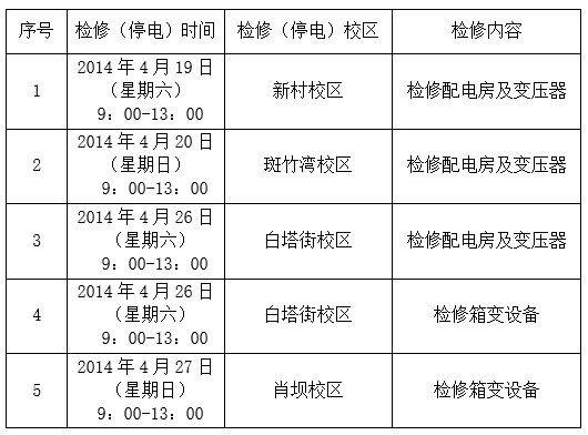 伟德国际victor19462014年度各校区检修(停电)安排表