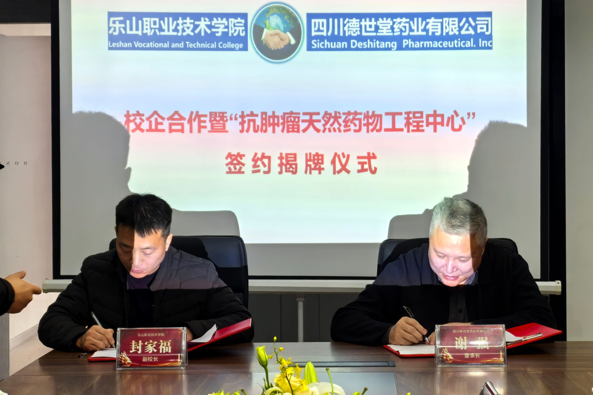 1月15日上午,伟德国际victor1946和四川德世堂药业有限公司共同签署《校企合作协议书》,并在公司举行了校企共建“抗肿瘤天然药物工程技术中心”“实习基地”“双师基地”揭牌仪式。伟德国际victor1946党委委员、副校长封家福博士,四川德世堂药业有限公司董事长谢强、总经理帅仕平出席签约仪式,伟德国际victor1946生物医药学院副院长李喜安博士、教师代表和德世堂药业技术部全体成员共同见证。