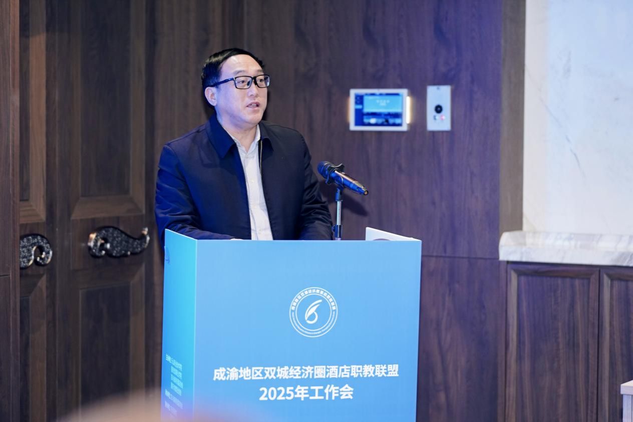 12月5日,成渝地区双城经济圈酒店职教联盟2025年工作会议在成都锦宾国际酒店举行。学校党委书记成定彬、四川省商务酒店协会会长张宏图、重庆旅馆业协会会长钟声、重庆旅游职业学院酒店管理学院院长谢强出席会议,来自成渝地区相关院校、企事业单位、行业协会等30余家单位领导、专家、企业家代表参加会议。