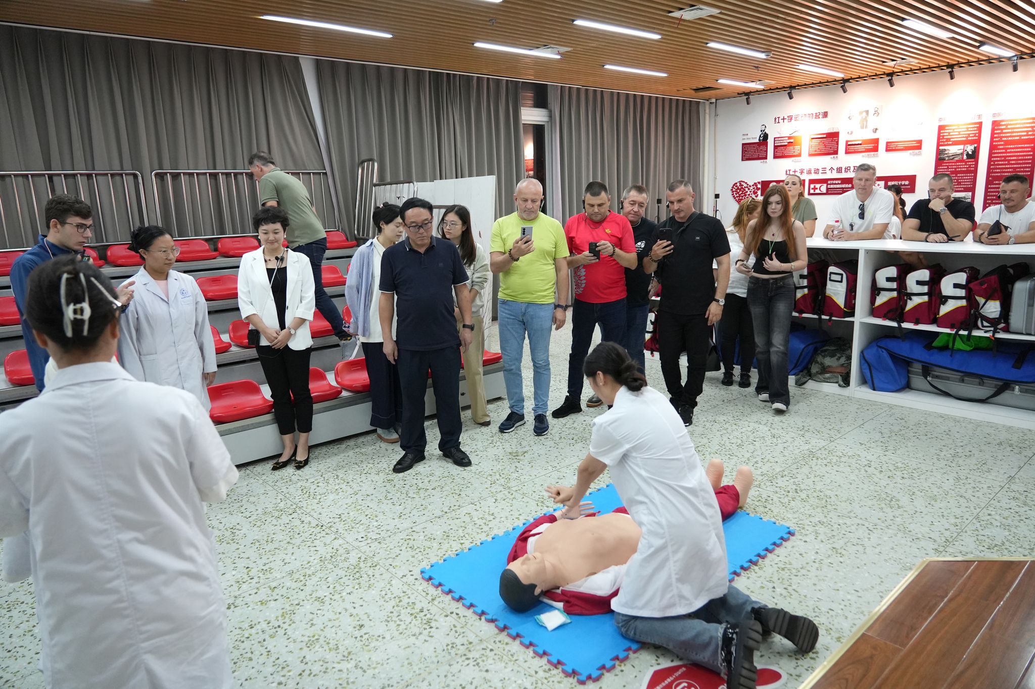 最后,代表团来到医护实训楼,参观了依照高标准建设的红十字应急救护培训中心以及设施完备的护理实训室。规范的操作流程、逼真的模拟环境和学生娴熟的技能展示,赢得了外宾们的频频赞许。