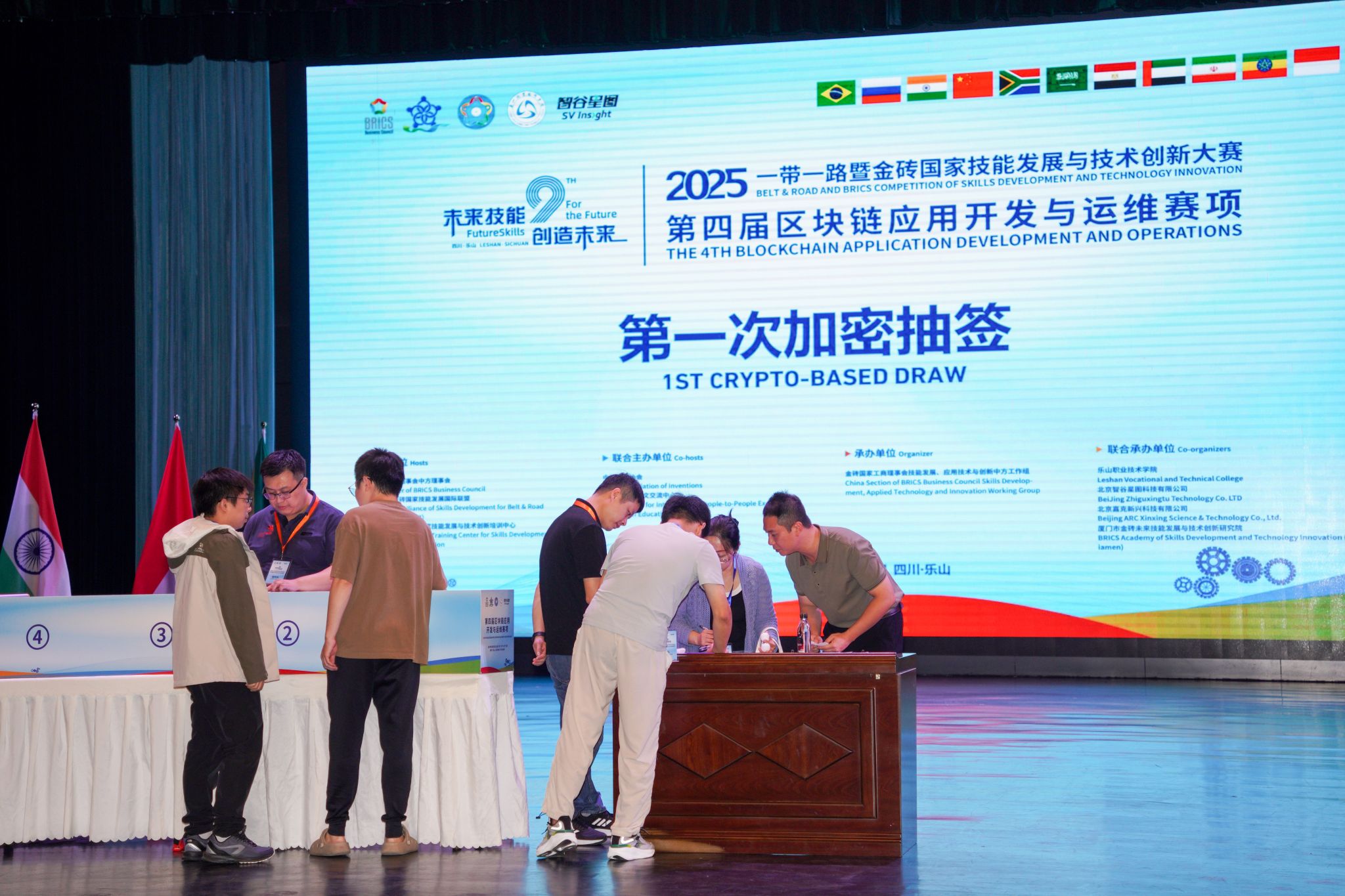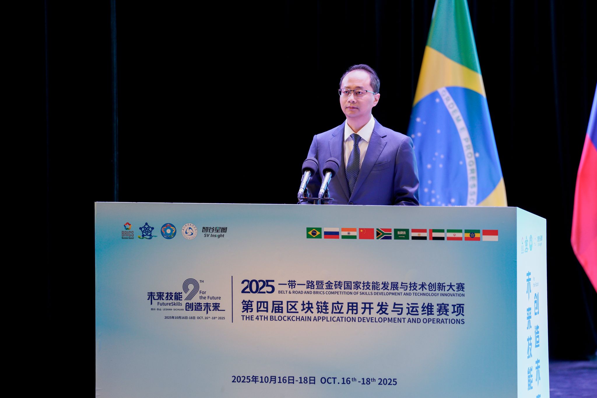 10月16日,2025“一带一路”暨金砖国家技能发展与技术创新大赛之第四届区块链应用开发与运维赛项开幕式在伟德国际victor1946礼堂举行。