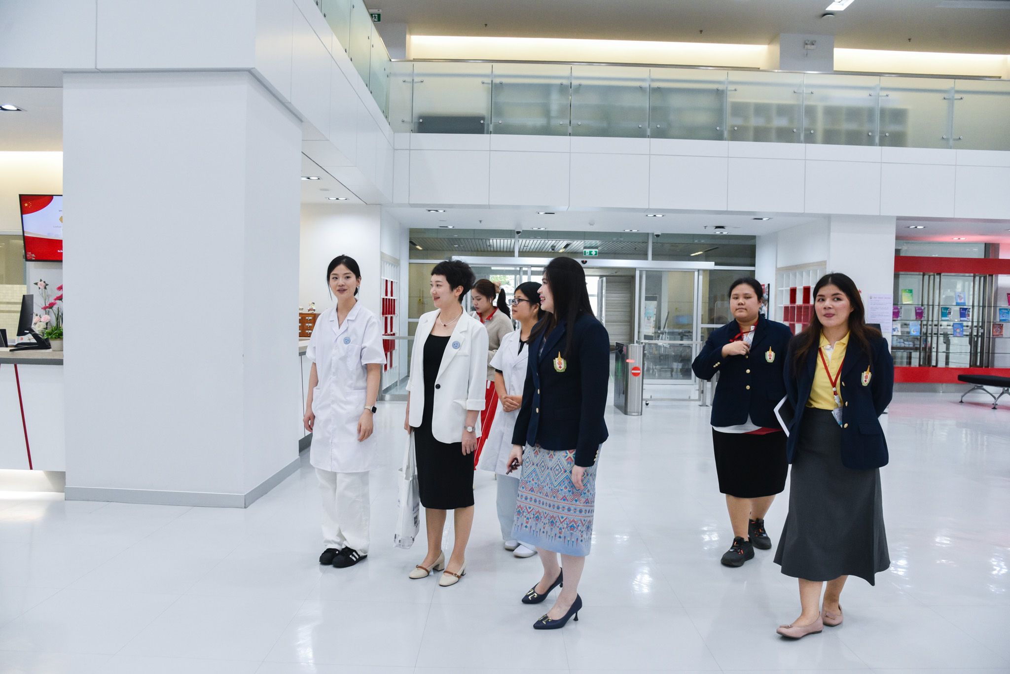 次日清晨,恰逢泰国红十字护理学院新学期开学典礼,代表团获至高殊荣——泰国诗琳通公主殿下亲自接见。诗琳通公主对远道而来的中方师生致以热烈欢迎,充分彰显对中泰教育交流的高度重视。此次交流期间,彭麒燕老师将带领交换生开展多元活动,涵盖实训室观摩、文化互动、医院临床实践等领域。彭麒燕老师两周后返程,两位交换生将继续完成为期两个月的交换学习。