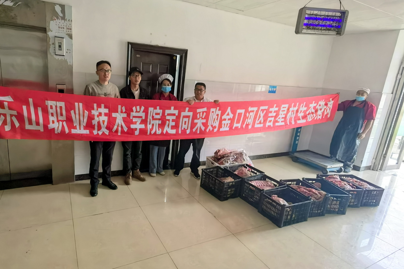 10月20日,在金口河区吉星村副书记王联松、学院派驻吉星村帮扶干部罗海林的护送下,来自学院对口帮扶的金口河吉星村500斤生态猪肉送达学院食堂。