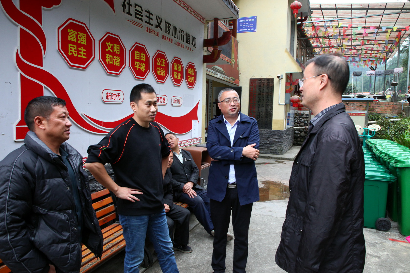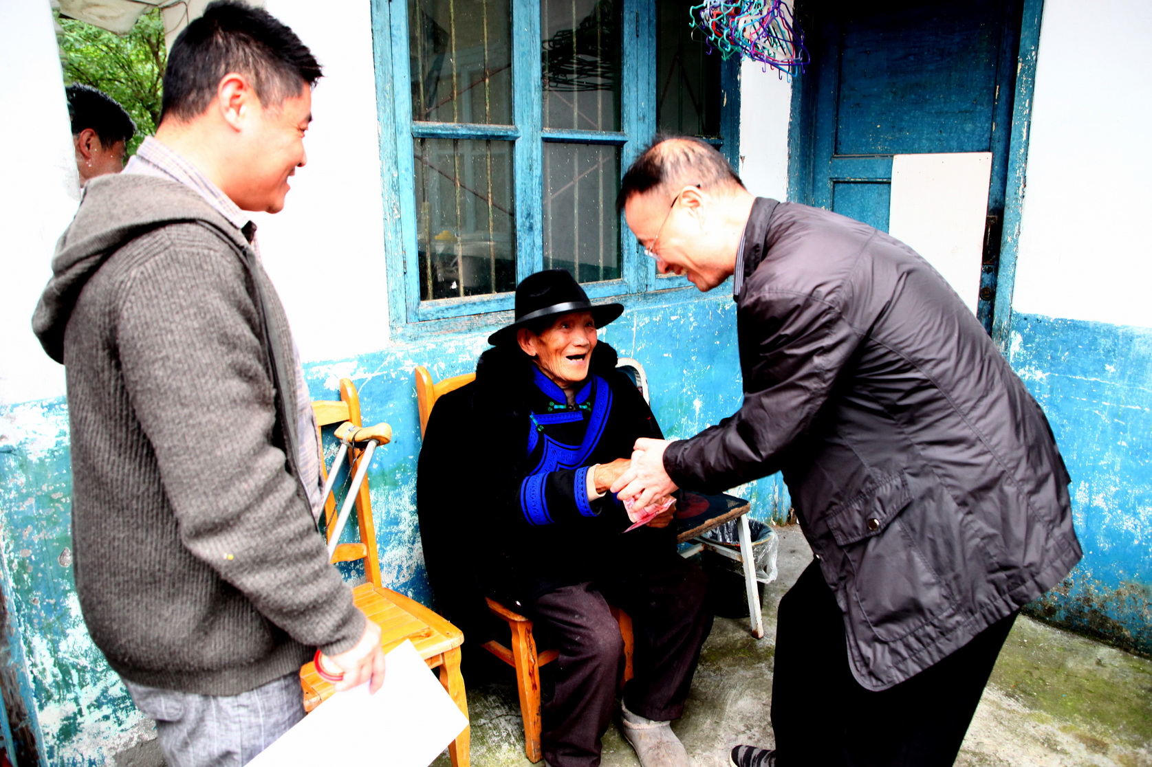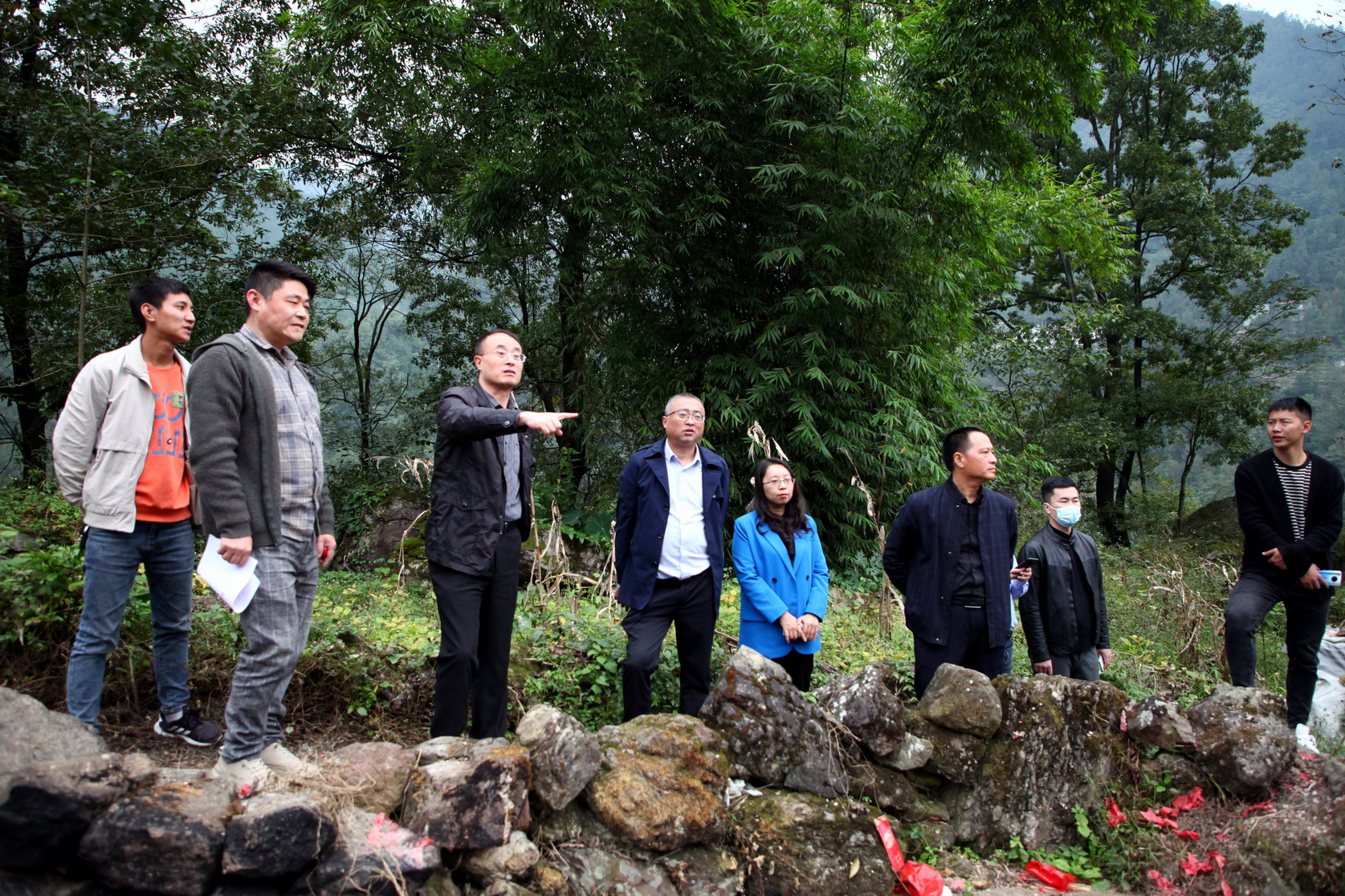 随后,调研组一行来到峨边彝族自治县金岩乡俄罗村和罗卜村,看望慰问驻村帮扶干部刘科和刘飞飞。在俄罗村,调研组一行到脱贫户家中看望老人并送上慰问金,查看了消防站的设施设备,实地考察跑山鸡饲养场选址地。在罗卜村,调研组一行向村“两委”捐赠了一批保洁设备,并详细询问了解帮扶工作情况。