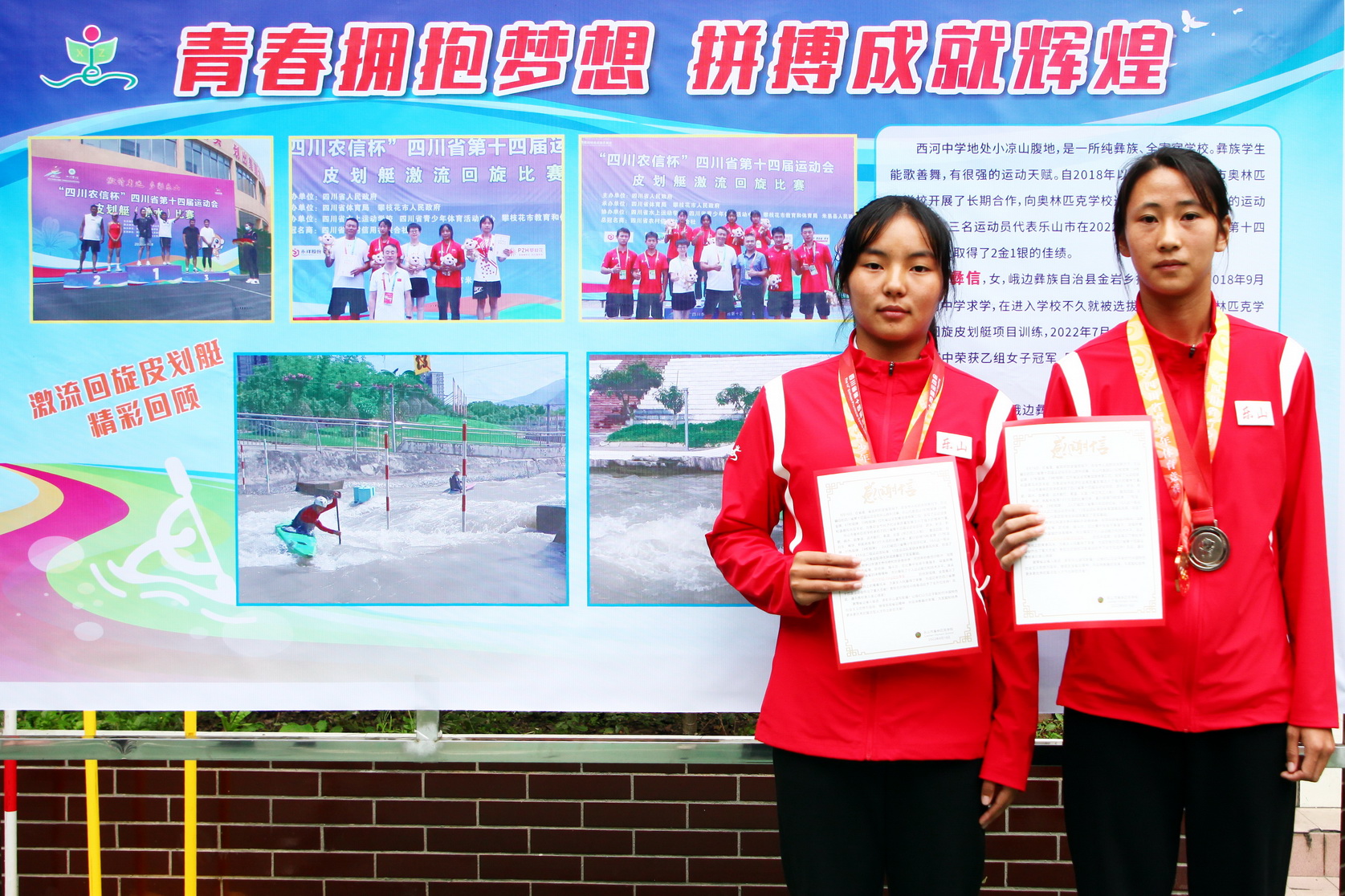 20日下午,调研组一行来到峨边西河中学,向在省运会激流回旋皮划艇项目中获得冠军的吉胡彝信和亚军洛子阿叶两位运动员表示慰问。