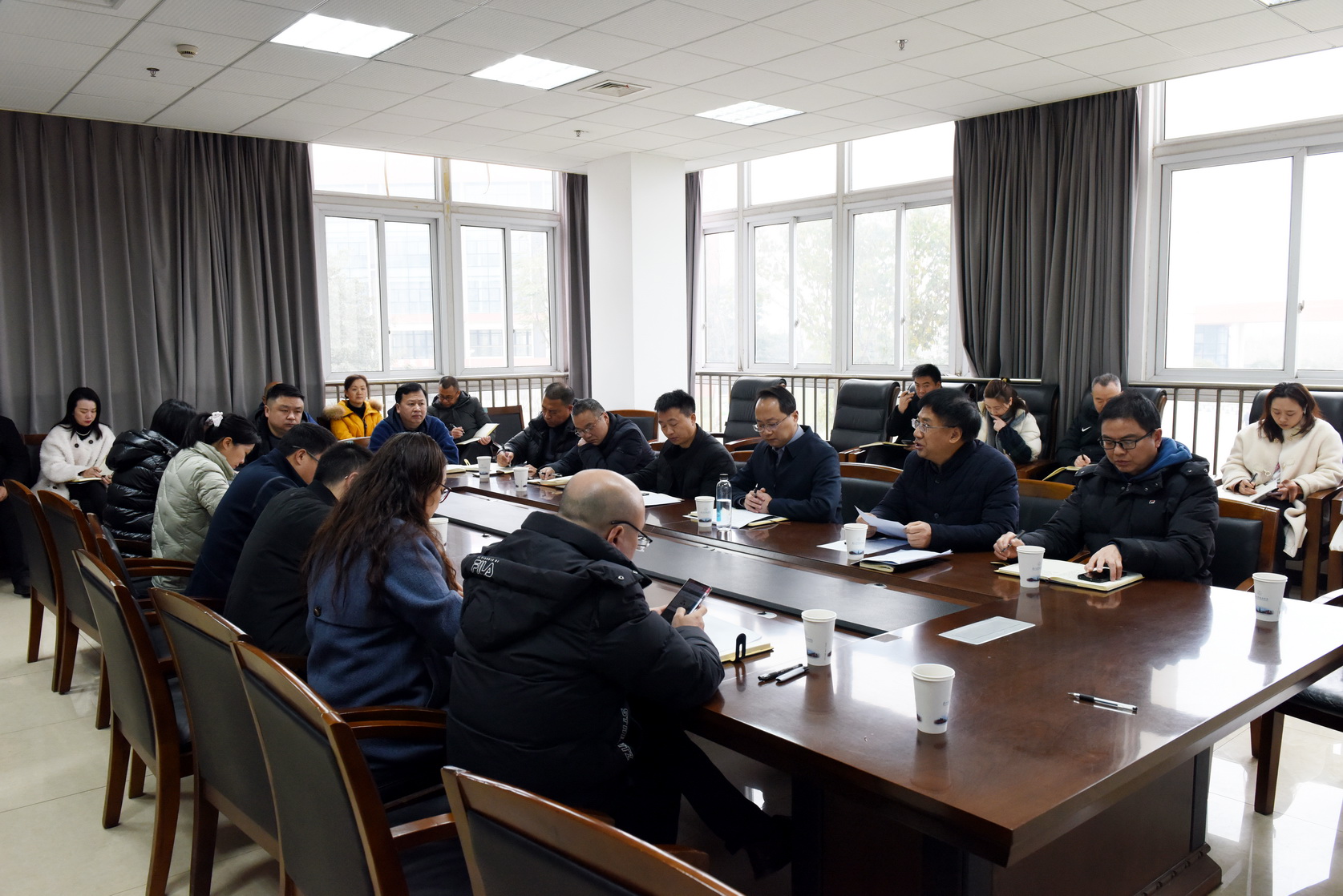 2024年2月27日上午,春季学期安全工作会议在2号教研楼201会议室召开,学校党委副书记张佳,校党委委员、副校长封家福,安全工作重点处室负责人,各二级学院党总支书记、专职副书记,驻校民警,保卫处相关人员参会。会议由封家福主持。