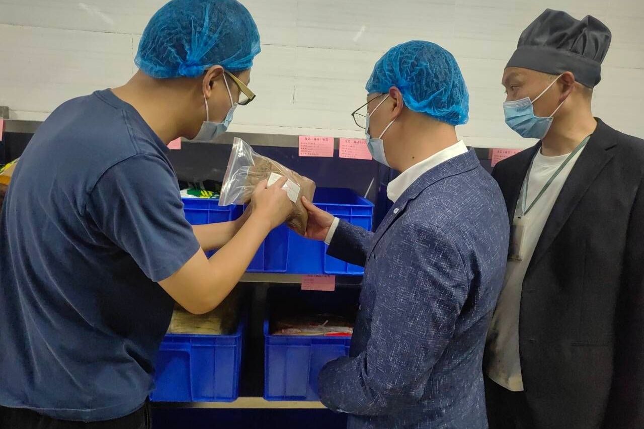 检查组对食堂公示栏、备餐间、储存室、操作间等逐一查看,重点对油品、冻库、样品留存以及快检室数据等进行了详细检查。职工代表在检查过程中感受到食堂管理较为规范,卫生情况较好,食材较为新鲜,总体感觉较为满意。