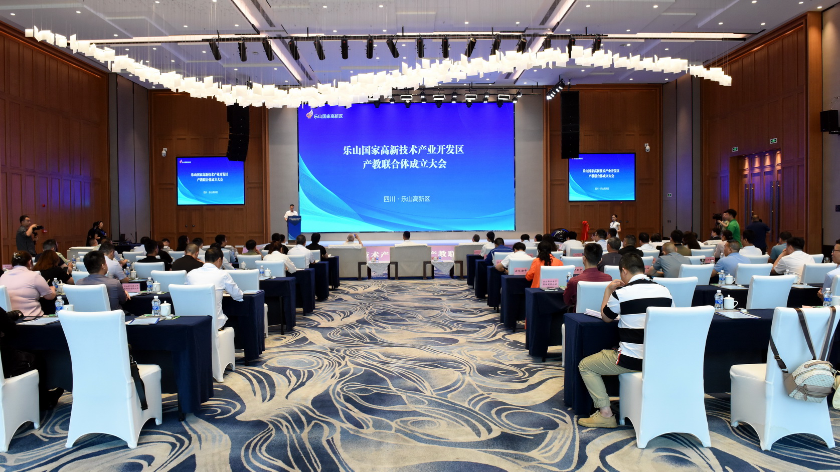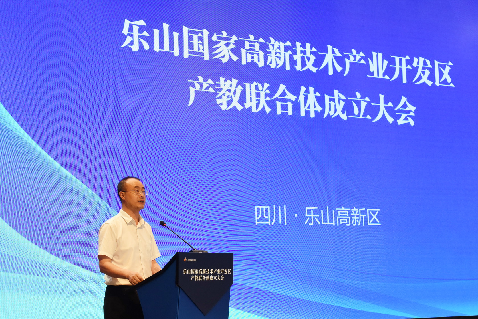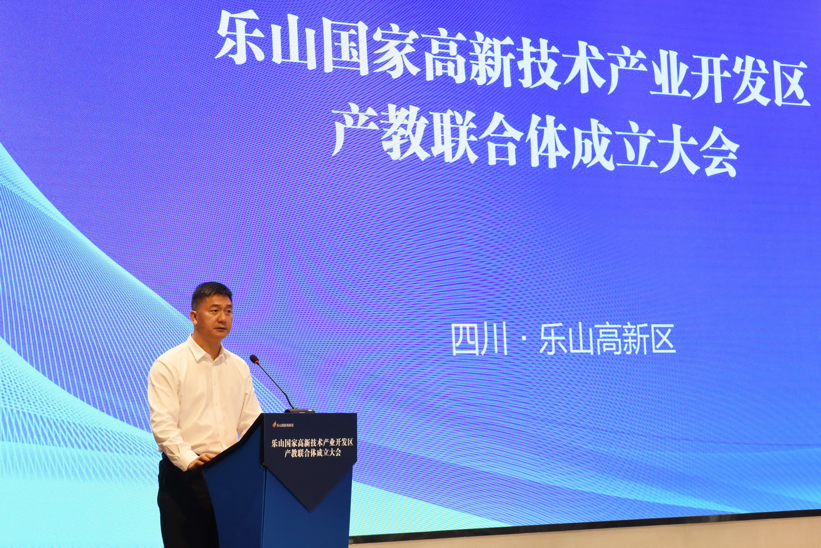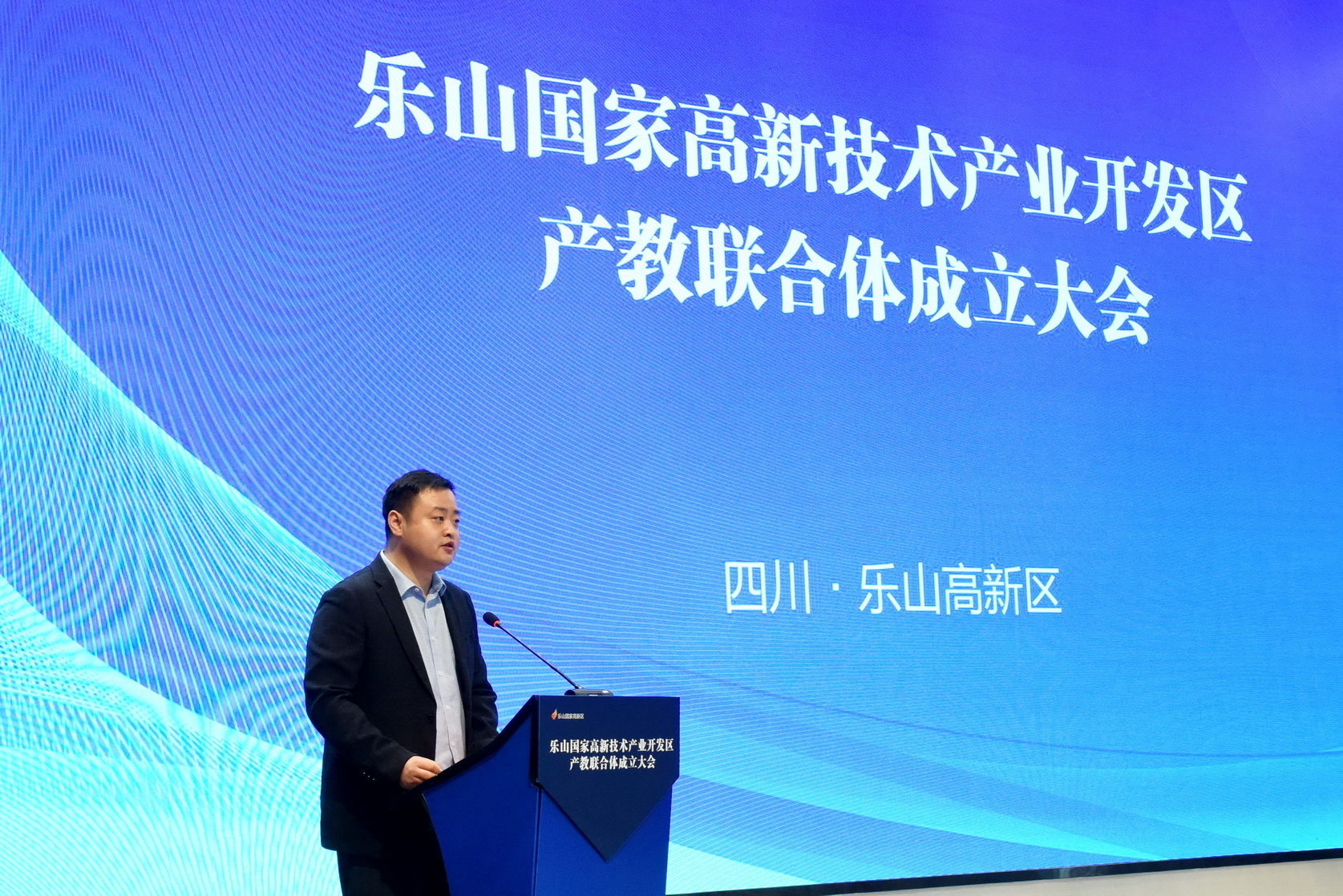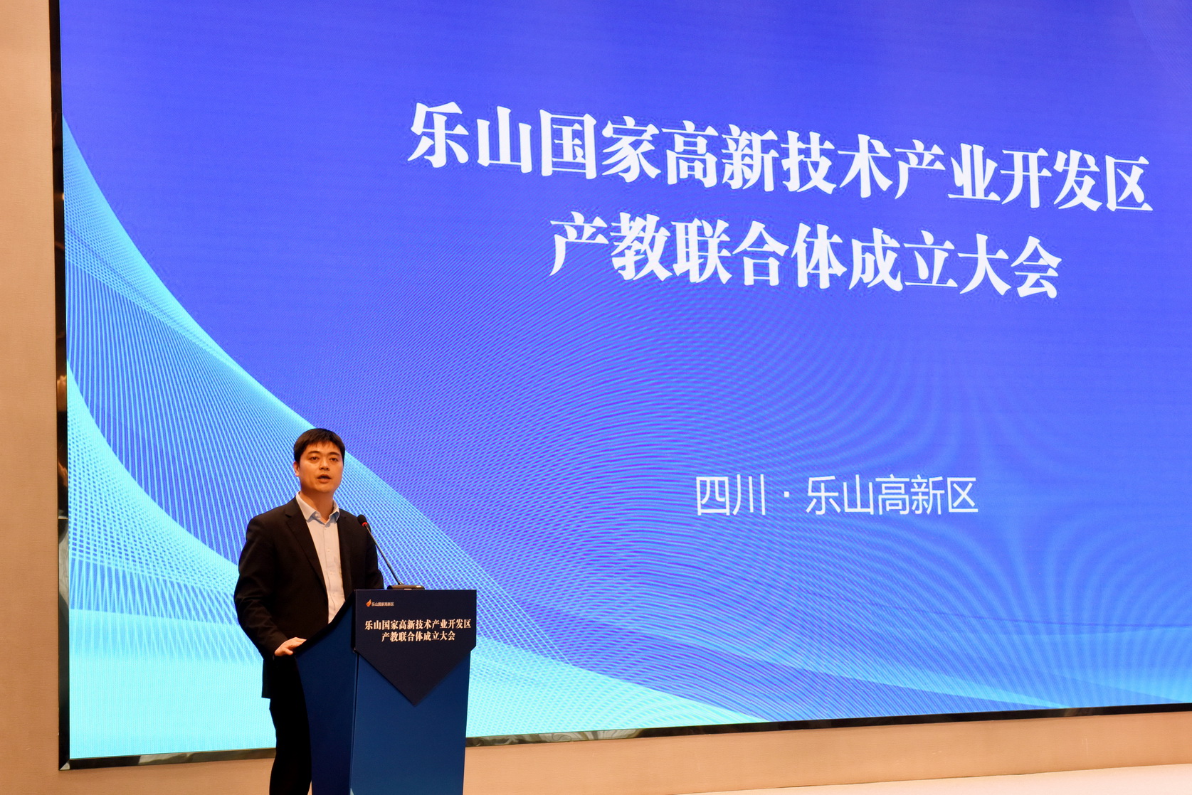 乐山国家高新技术产业开发区产教联合体成立大会现场,大会由市委教育工委书记、市教育局局长刘才能主持。