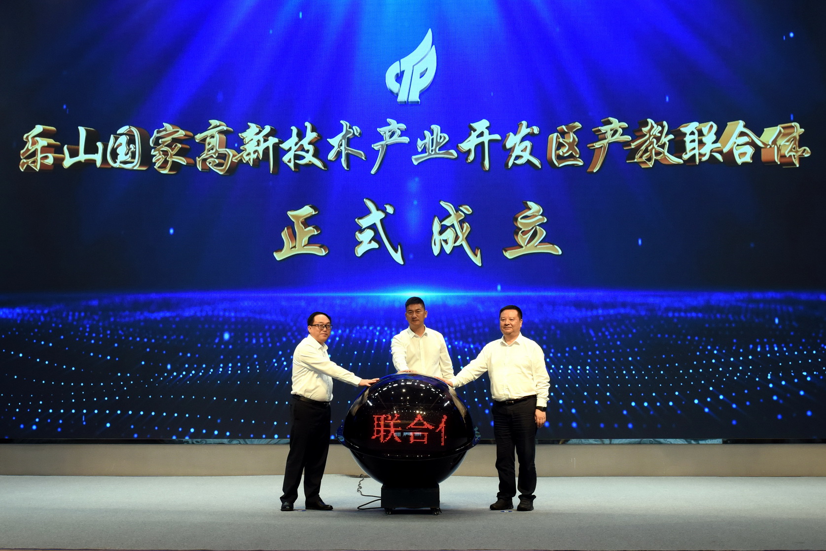 乐山市人民政府副市长沙万强、伟德国际victor1946党委书记成定彬、乐山高新区党工委书记广兵为“产教联合体成立”揭牌。