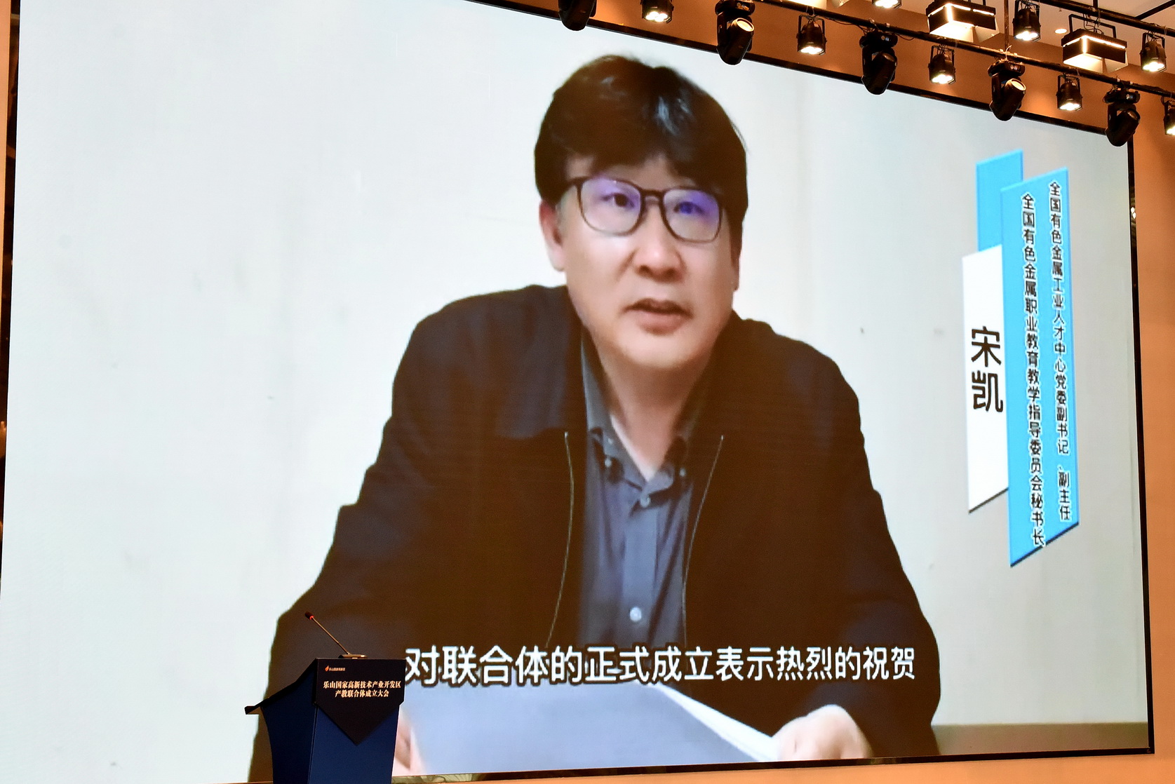 全国有色金属工业人才中心党委副书记、副主任,全国有色金属职业教育教学指导委员会秘书长宋凯视频致辞。