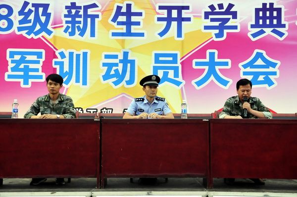 为增强全院新生的法律观念和安全意识,军训团组织的全体新生入学法制教育,于9月13日晚7时,在学院西操场举行,全院近3500名新生参加了此次大会。大会由军训团参谋长张清祥主持,苏稽派出所副所长孙强主讲。