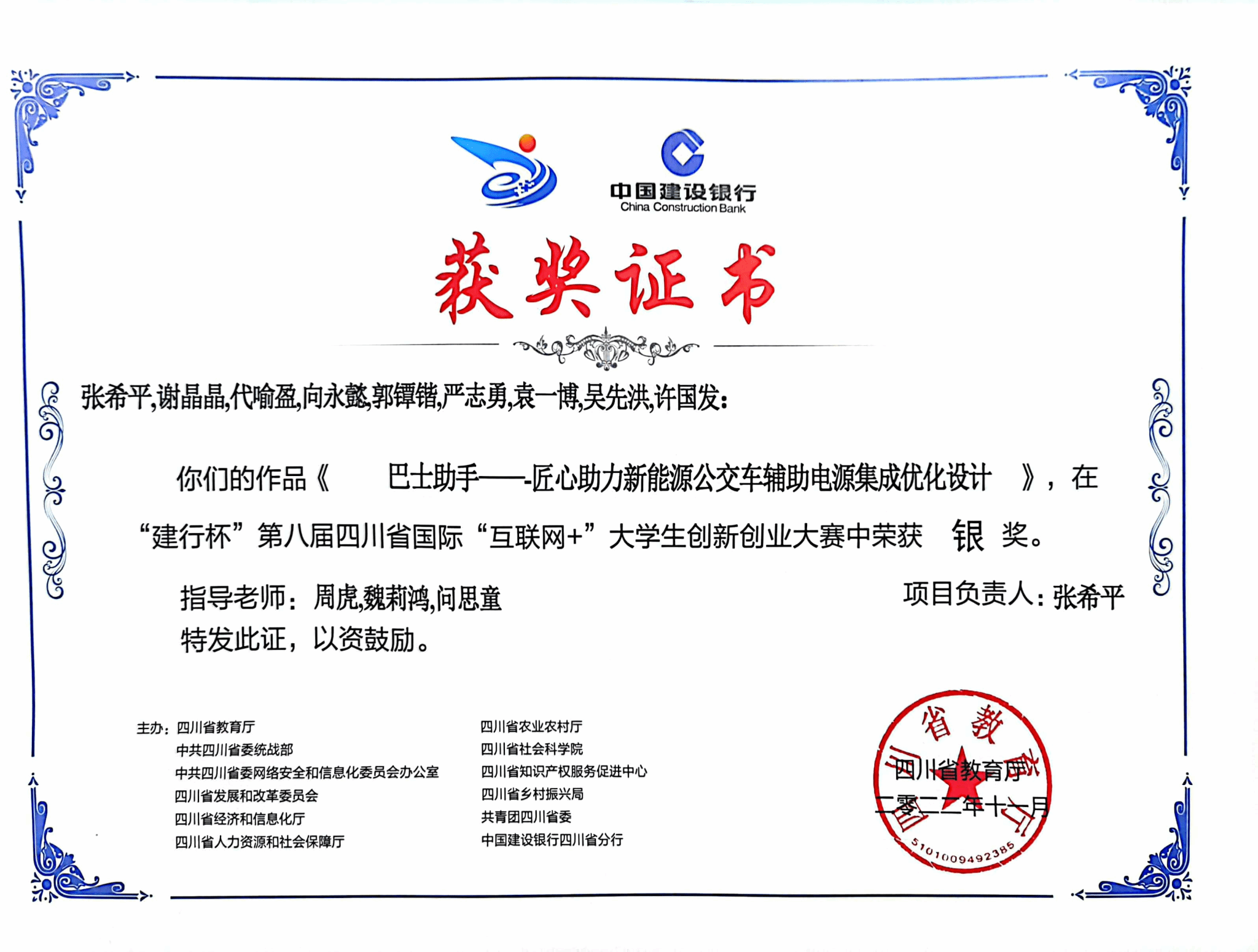 学院学生获“中行杯·四川省技能大赛”新能源汽车智能化技术赛三等奖