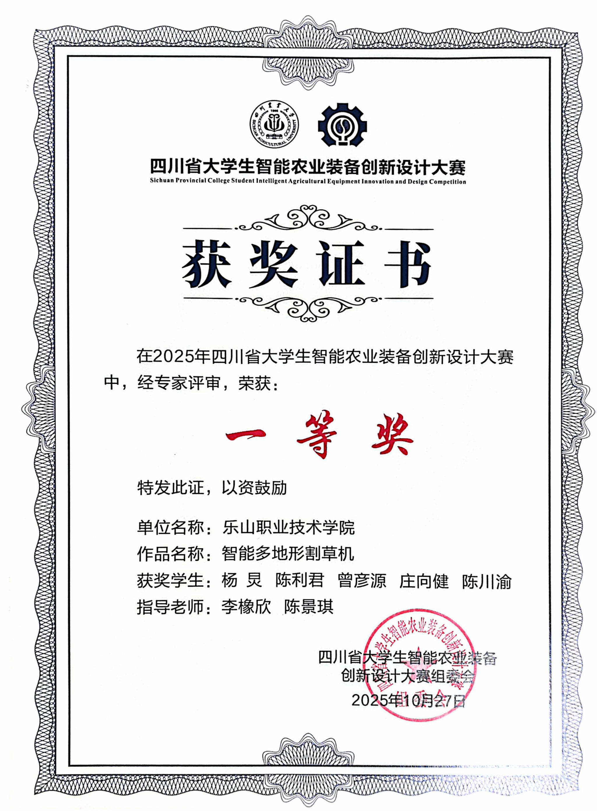 学院学生获四川省大学生智能农业装备创新设计大赛一等奖