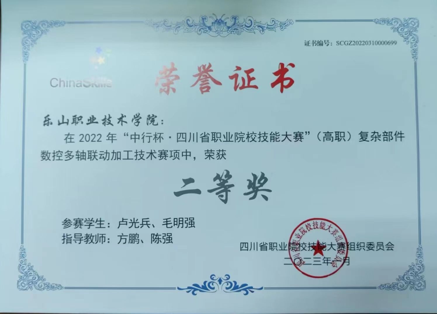 学院学生获中行杯·四川省技能大赛复杂部件技术赛二等奖