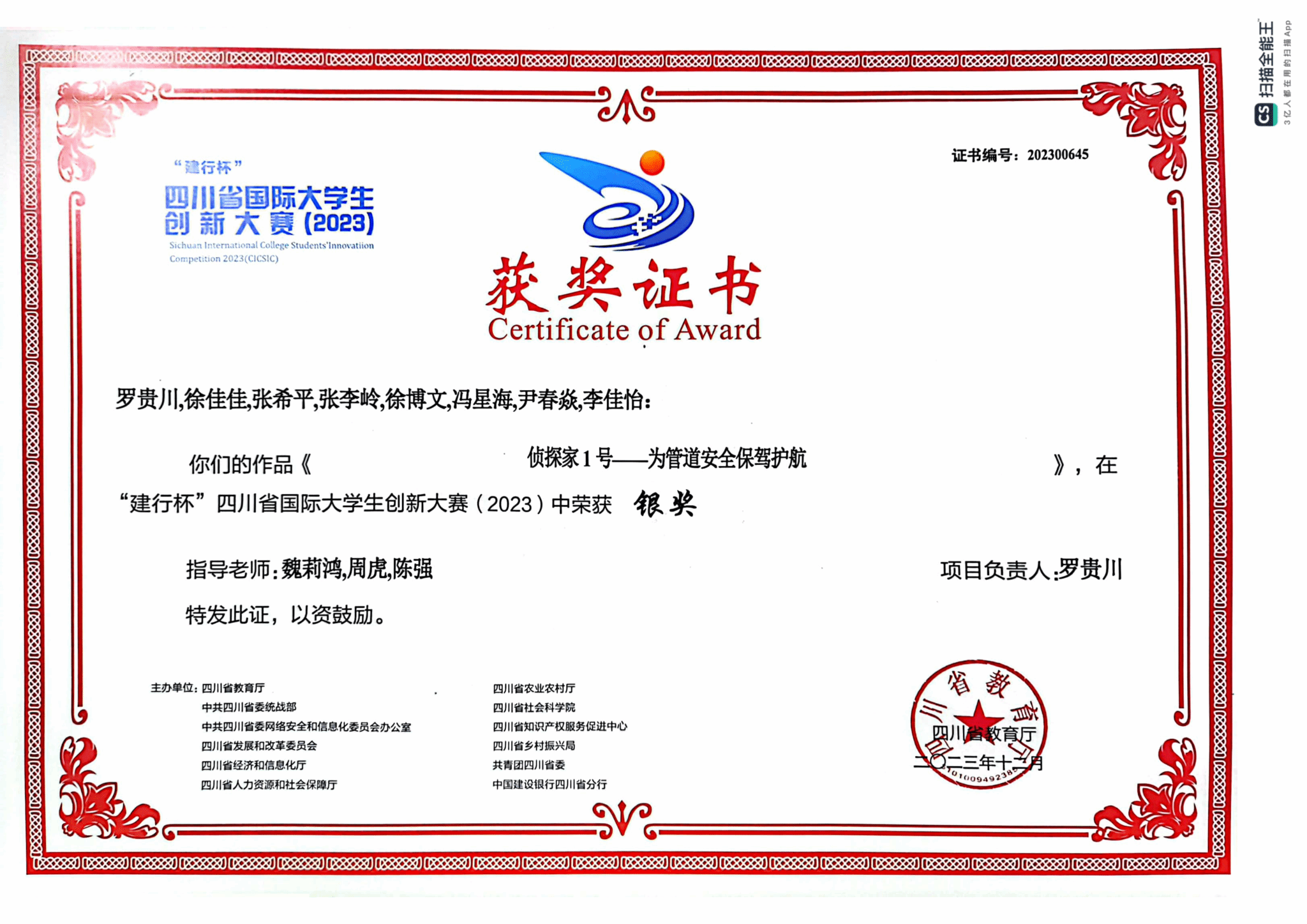 学院学生获“建行杯”四川省国际大学生创新大赛银奖