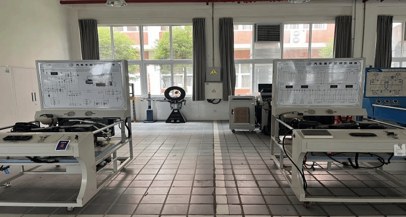 汽车空调系统实训室配备有多台汽车空调系统教学平台,主要用于汽车空调系统的检测与维修实训。学生可以在这里学习汽车空调系统的组成与工作原理、制冷剂的充注与回收、空调系统的故障诊断与维修。通过实训,学生能够掌握汽车空调系统的维护与保养技术,提高在空调系统方面的维修能力。