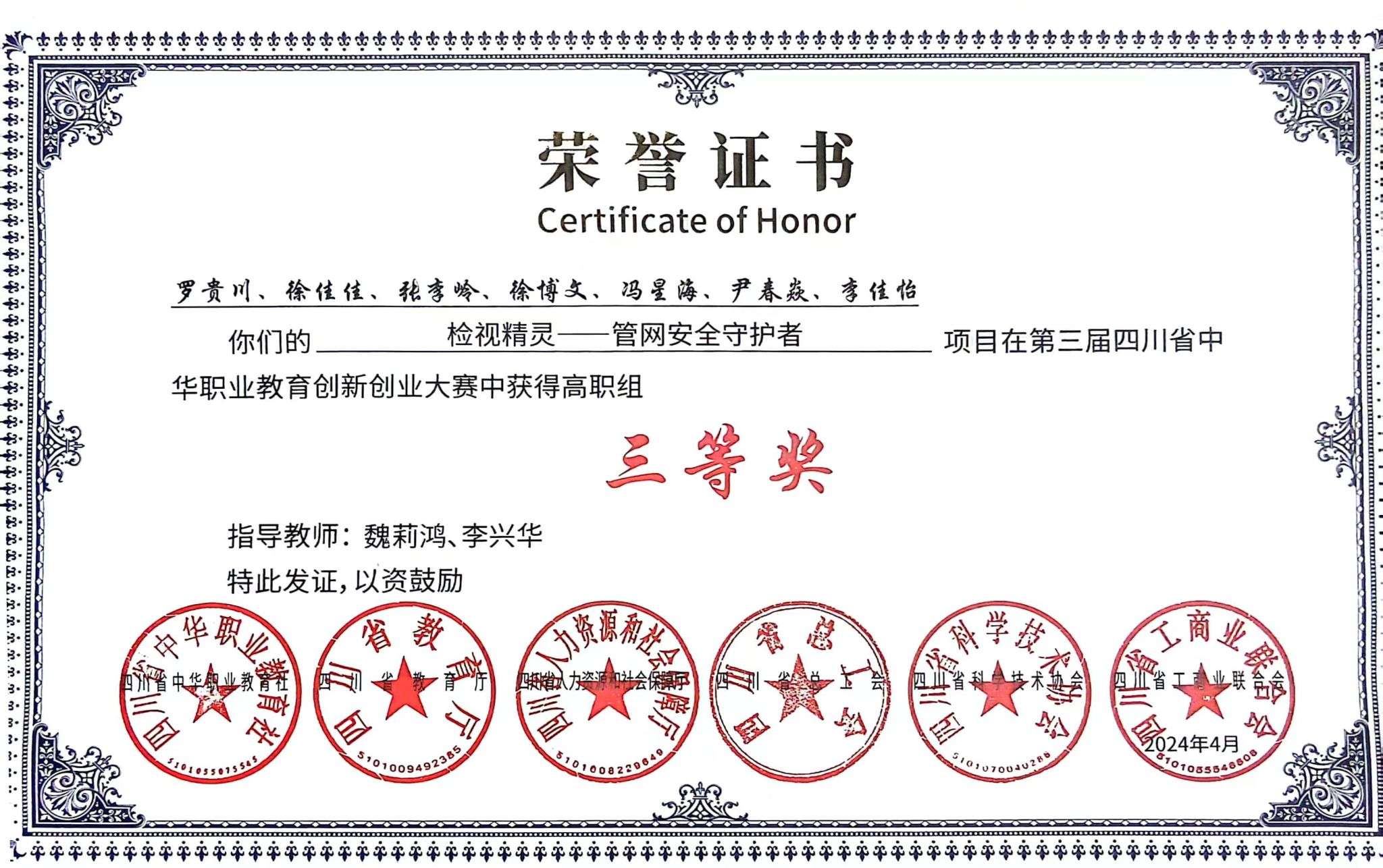 学院学生获四川省中华职业教育创新创业大赛高职组三等奖
