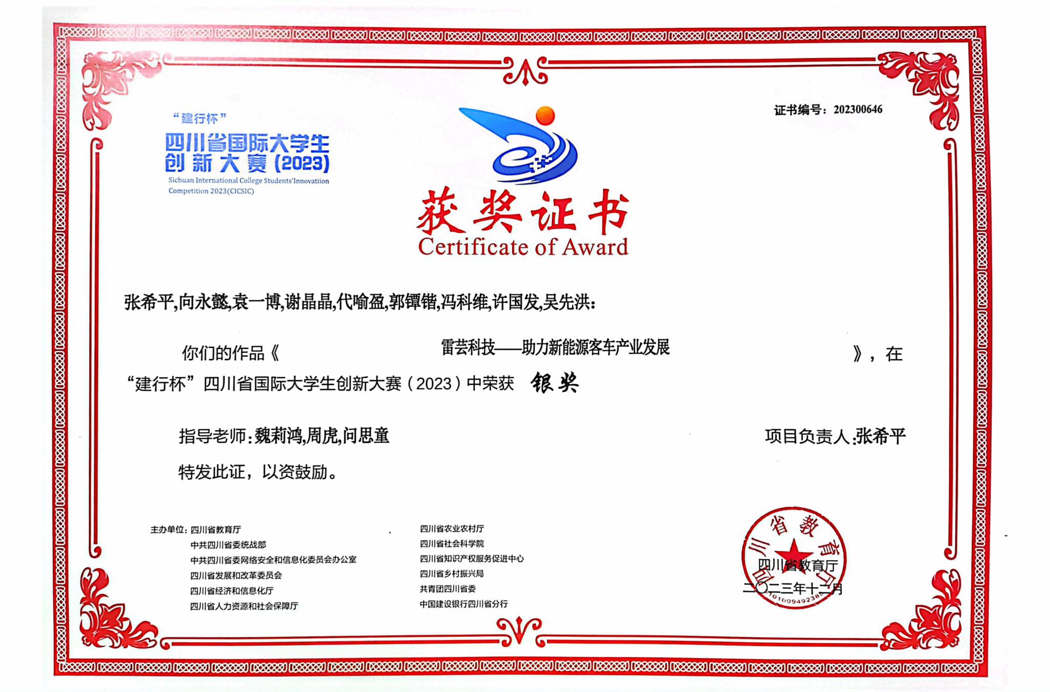 学院学生获“建行杯”四川省国际大学生创新大赛银奖