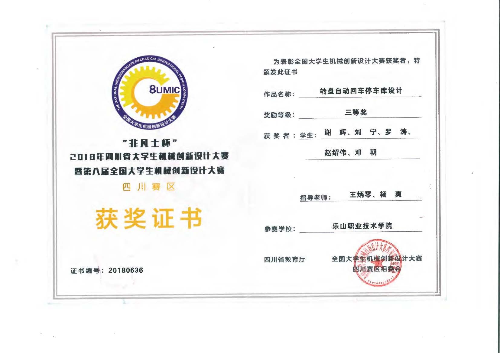 学院学生获“非凡士杯”2018年四川省大学生机械创新设计大赛三等奖