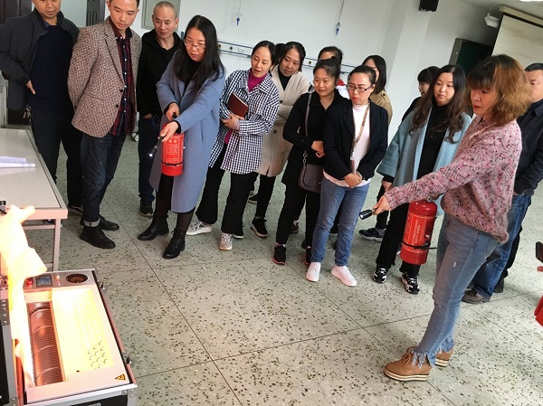 本次培训由保卫处徐波老师主讲,培训活动分为理论学习与实际操作演练两部分。徐波老师紧紧围绕消防四个能力建设内容:1.检查消除火灾隐患的能力; 2.组织扑救初起火灾的能力; 3.组织人员疏散逃生的能力;4.消防宣传教育培训的能力,针对开展实验实训室消防安全工作的重要性与应急处理方法进行了详细的讲解。随后,全体人员进行了灭火器使用的实操练习。