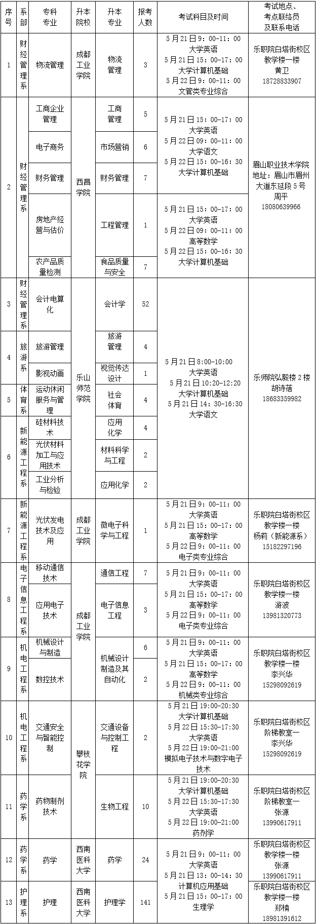 1、乐山师范学院 69人 2、西南医科大学 165人