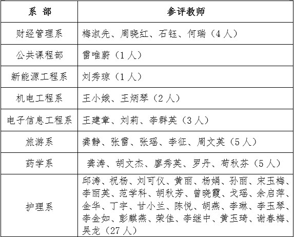 通过系部初测评的第二批C组教师,按照“项目化课程教学设计与教育教学能力测评”申报及测试程序,11月13日上报资料后,经专业大类及院级领导小组审核,现将参加现场测评人员名单公布如下: