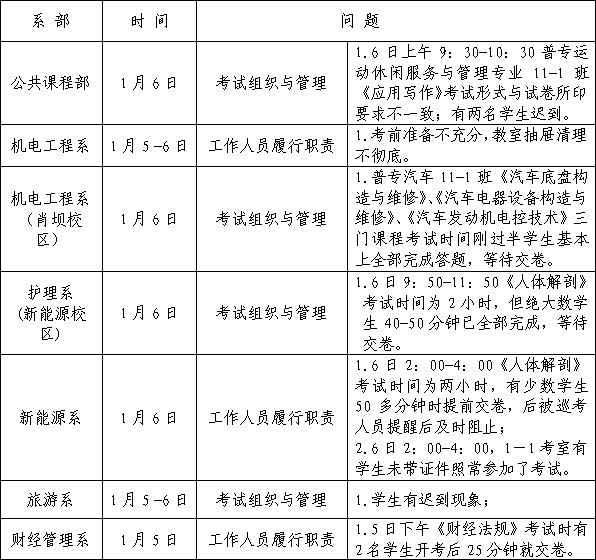 2013年1月5日教务处对全院期末考试工作进行了第一次通报;现将1月5日—1月6日考试情况作第二次通报如下: