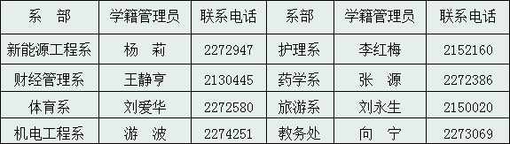 五、学籍管理工作人员及联系电话