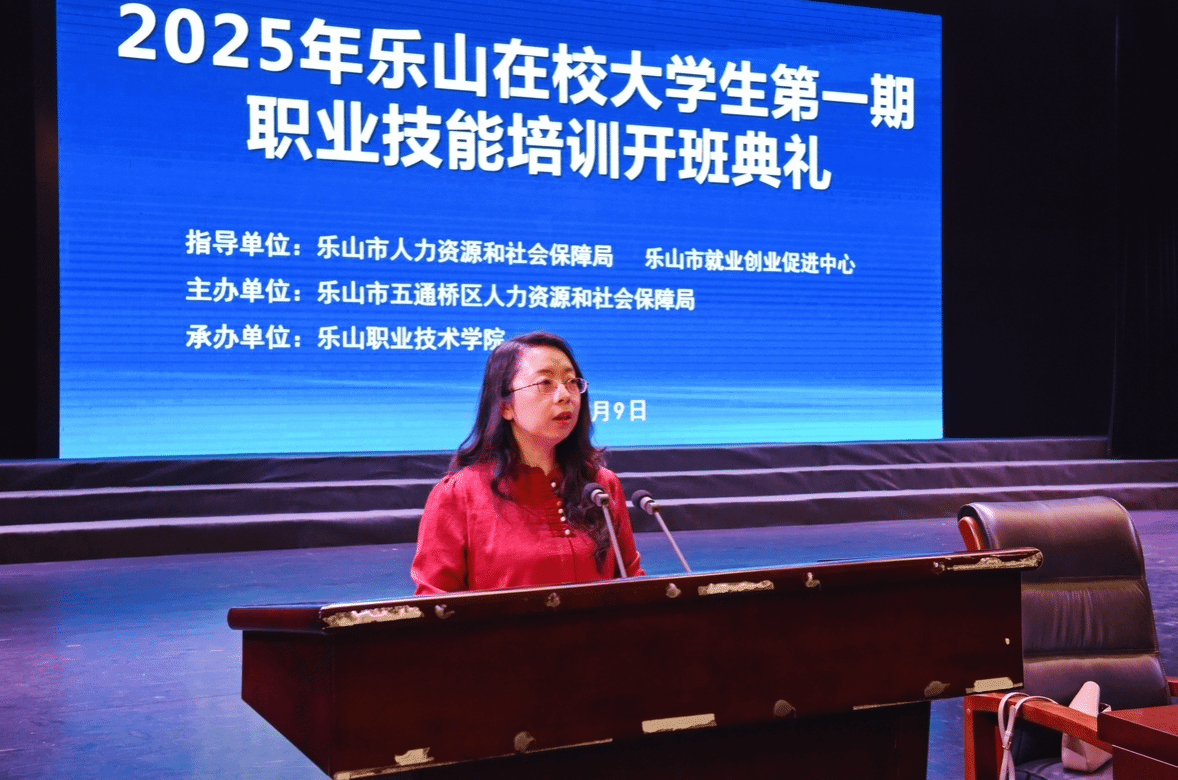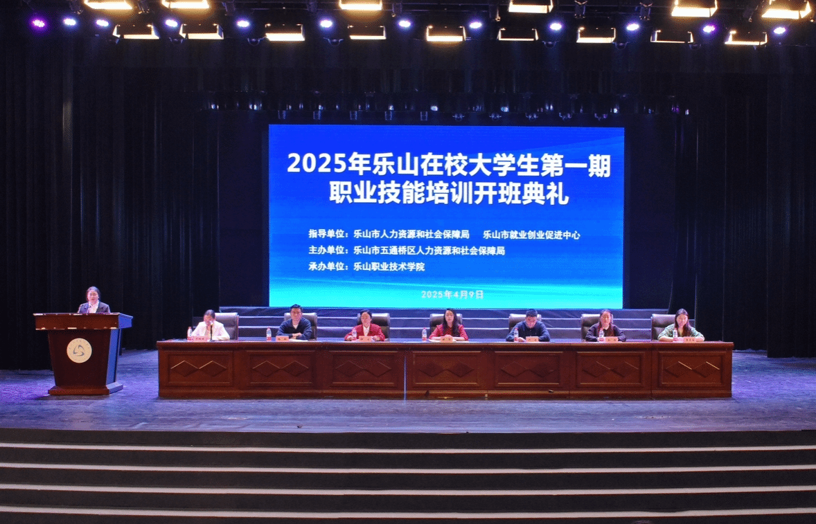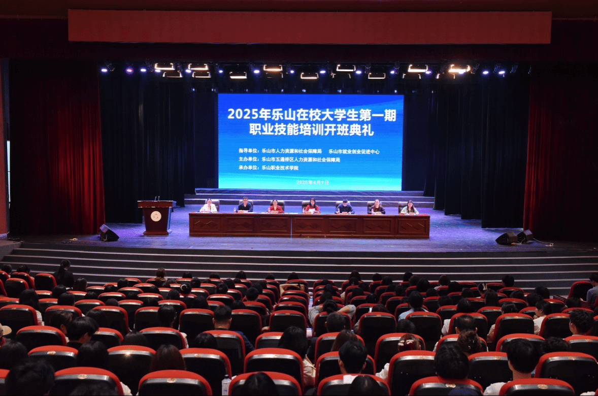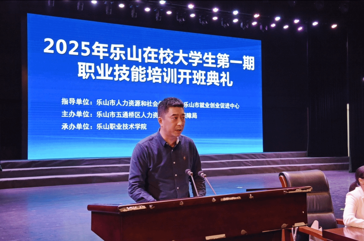 为深入贯彻落实国务院、省政府、市政府决策部署,扎实推进乐山市职业技能提升行动,4月9日下午,2025年乐山在校大学生第一期职业技能培训班开班典礼在伟德国际victor1946礼堂隆重举行。此次培训班由五通桥区人力资源和社会保障局与伟德国际victor1946共同举办,旨在提升乐山在校大学生的职业技能,促进大学生就业。