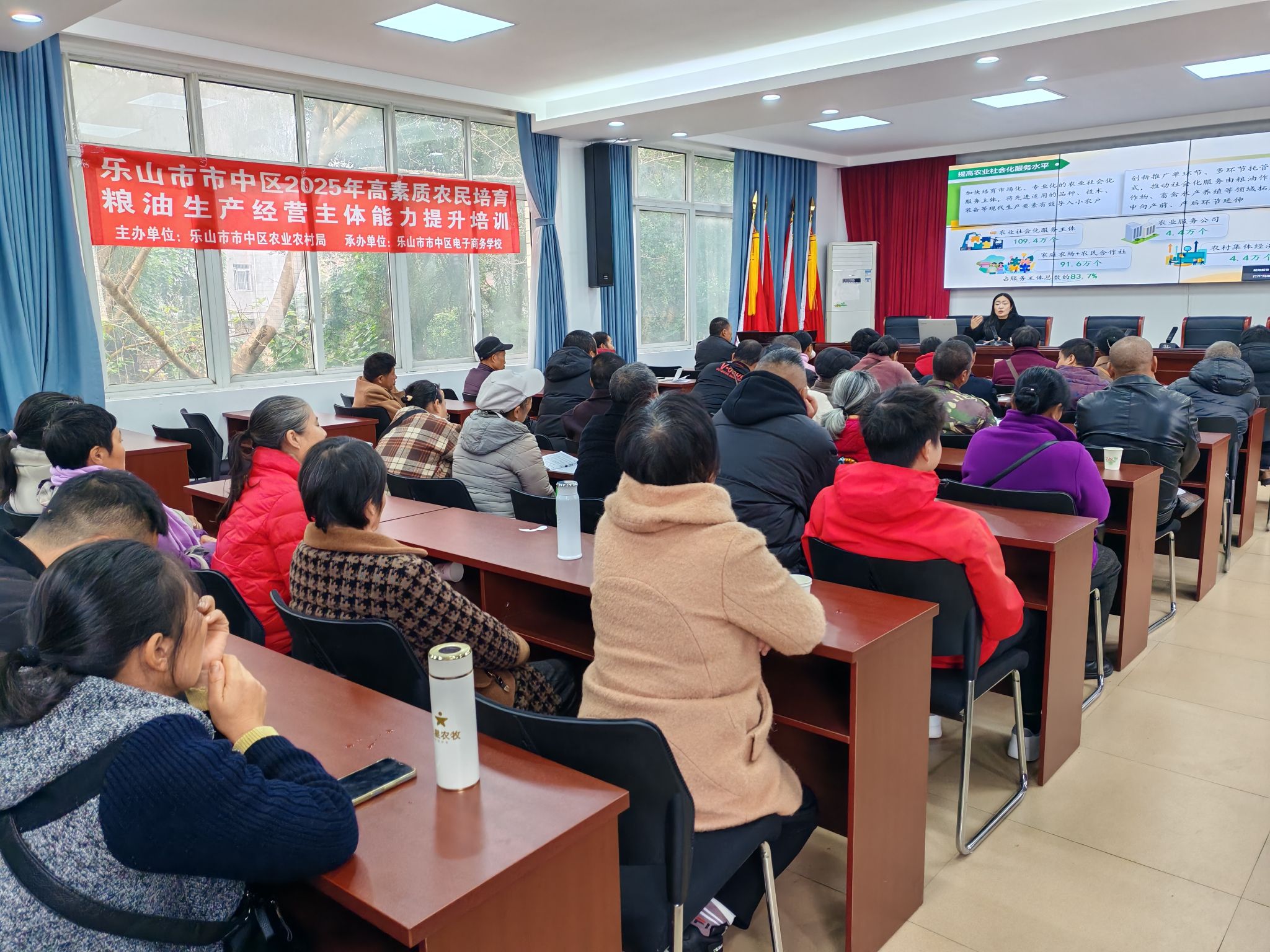 2025年11月25日上午,由乐山市市中区农业农村局主办的“乐山市市中区2025年高素质农民培育粮油生产经营主体能力提升培训”班在茅桥镇举行,我院教师司田园受邀开展政策宣讲,共计60余人参加。