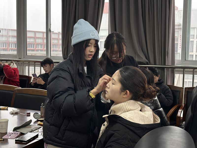 值得一提的是,医学美容技术专业的同学们在此次活动中担任了化妆队。他们凭借专业的技能和创意,为《送你一朵小红花》和《青江非遗》的演职人员精心设计妆造,最终完美呈现。从清新自然的舞台妆到富有特色的非遗妆容,每一个细节都展现了同学们的用心和才华。
