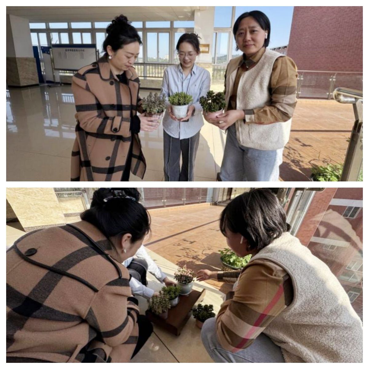 教职工漫步苏稽镇油菜花田,开展摄影采风与团队互动。集体DIY多肉微景观盆栽,创作成果用于装点办公及教学区域。活动期间围绕教学科研、职业成长等话题展开交流,学院听取教师发展建议。