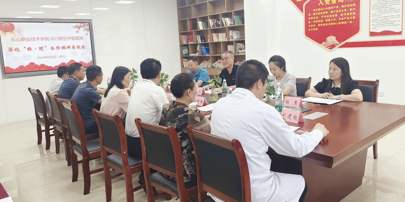 6月5日,校长刘忠率队前往沐川新区中医医院,开展调研交流及“访企拓岗”活动。沐川县委常委、宣传部部长魏蔚、沐川县卫生健康局党组书记、局长温友强、医院院长王晓峰及相关部门负责人参加座谈交流。