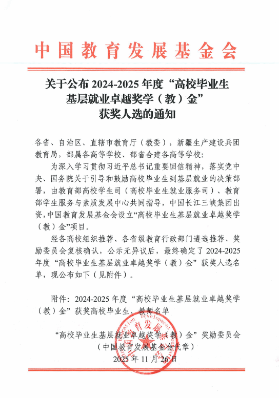 伟德国际victor1946学生冯鹏获2024-2025年度“高校毕业生基层就...