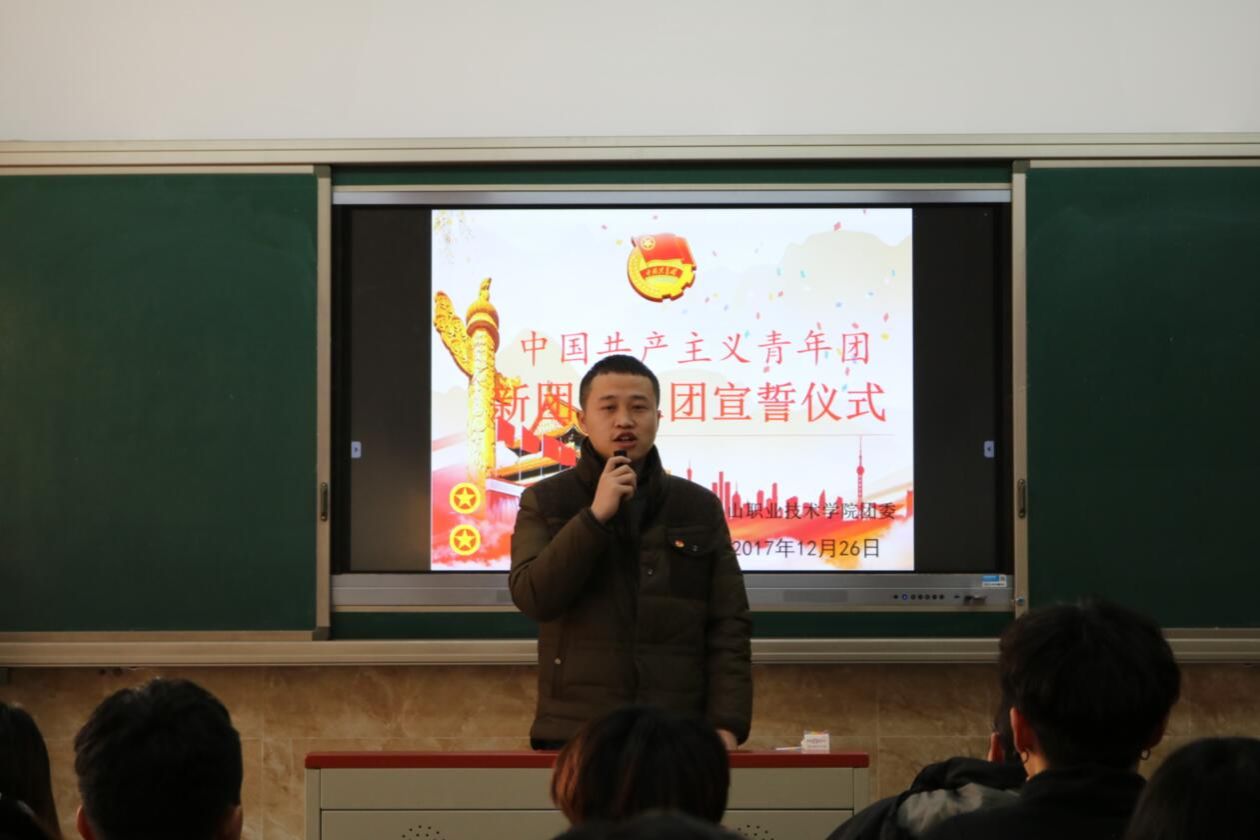 我院团委于2017年12月26日在2b104举办了新团员入团宣誓仪式。出席本次仪式的有学院团委副书记王渊明,学院团委老师郭胜男,学院团委老师魏莉鸿,以及各系代表和100名新团员,我系共有10名新团员参加此次仪式。