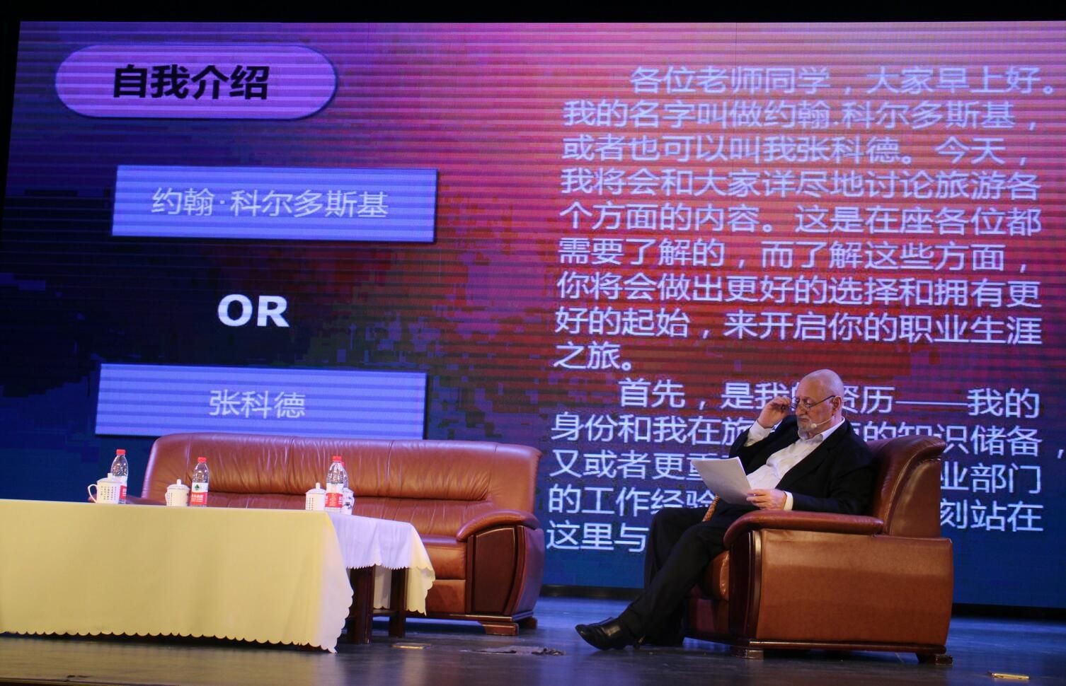 此次会议在乐山市人民政府副市长郭捷女士的发言中拉开序幕。她在发言中讲到希望各位专家学者聚智聚力,为旅游专业青年学生的成长成才提出宝贵的建议,同时推动乐山的旅游发展。紧接着来自雅阁酒店集团中国区总裁、渤海大学客座教授张黎明围绕中国旅游和酒店业的发展前景以及国际旅游发展的大趋势,与在场的学生们进行了主题交流,为旅游专业的学生以后的职业发展路径给出了宝贵意见。之后乐山师范学院特聘教授张科德给同学们分享了他年轻时从事旅游业的一些经历和收获,同时他也祝愿同学们未来能有一个好发展。最后的互动问答环节中,同学们踊跃发言并提出各种各样的问题,而现场专家一一解答为同学们排忧解难。