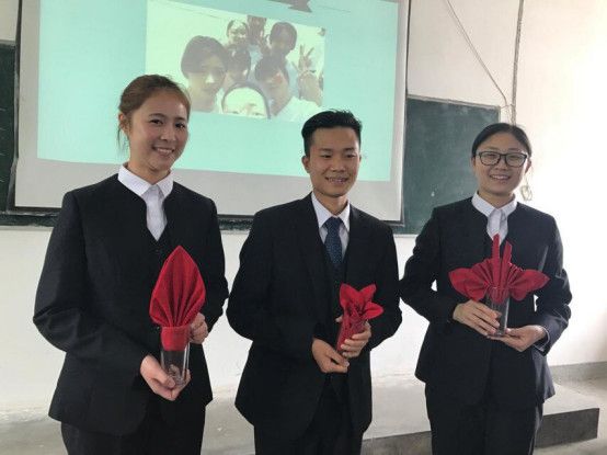 最后的餐饮服务技能比赛分别让同学们介绍了摆台、撤台、托盘以及折花的操作和注意事项,也让同学们进行了实际操作。比赛前,同学们以小组的形式登台献艺,将课堂气氛推向新的高潮,接下来的实力大比拼更是考验了同学们的专业技能,他们认真、专注的工作态度和娴熟的实践操作得了老师的认可,同学们的好评。