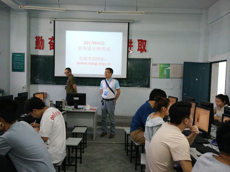 培训课程结束,在6月7日下午,广告与环艺专业共87名学生在综合楼六楼机房参加了NACG室内设计师数字艺术人才的考试。