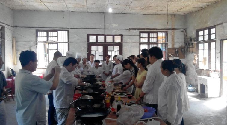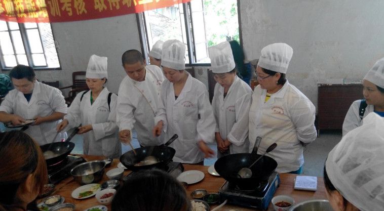 我系考评员陈瑞祥和胡文才于2016年6月8日,对沐川县沐溪镇三观楼社区的50名厨师进行了中式烹调师理论考试和实操考试,现场考场秩序有条不紊,监考教师与工作人员各司其职,考评员认真负责,对每道菜制作标准及制作程序进行讲评,要求厨师做菜时严格按照标准执行,确保每道菜的色、香、味稳定,新菜肴要保证回头客每次都可以尝到新口味。沐川县就业局领导观摩了鉴定考试,希望伟德国际victor1946的老师多到沐川来指导,提高沐川县厨师的烹调水平。