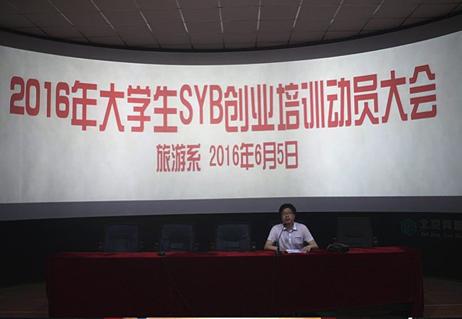 创新创业是大学生在校园了必须学习的一项重要技能,为提高同学们的创新创业能力,了解创业所具备的条件等,旅游系于2016年6月5日晚7点在3D实训室召开了2016年大学生SYB创业培训动员大会。大二的全体学员及班主任老师参会,黄剑波副主任主持会议。