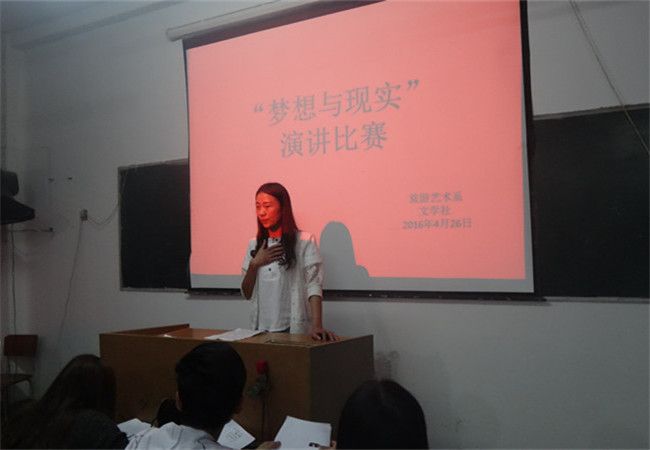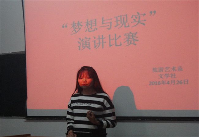 为了锻炼伟德学子的语言能力,培养同学们的自信心。伟德旅游系文学社于2016年4月26日晚7点在二楼多媒体教室举行了“梦想与现实”主题演讲比赛。比赛评委由团委副书记伍黄琴、学生会主席卢雅博、文学社社长朱珠组成,共有25名同学参加此次比赛。