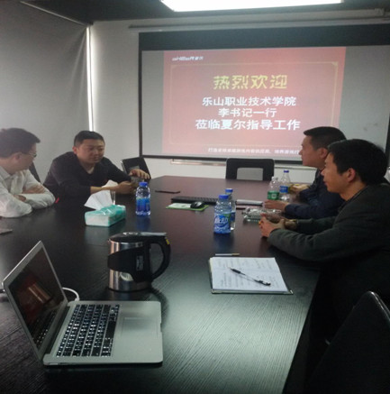李主任一行先到夏尔公司就双方合作中存在的问题和进一步合作进行了深入交谈,双方在学生实习安排、指导学生参加动漫比赛、单招考试、新专业申报等事项进行了深入研讨,初步达成一致意向;与夏尔公司实习见习的学生进行了座谈交流。
