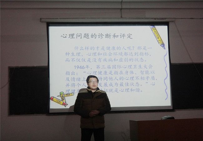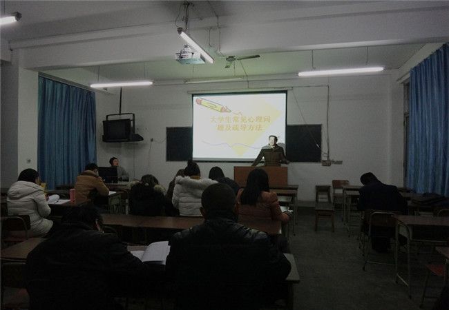 为了让大一的学生提高心理健康的意识,加强辅导员对学生心理健康的关注,2015年12月20日晚上7点,黄剑波主任在综合楼二楼多媒体教室对大一辅导员进行培训。
