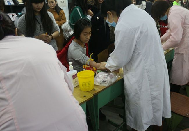 在血样采集过程中,老师积极组织同学们进行血样采集,同学们拿着自己的血样采集管有秩序排队进行采血,积极配合医生的工作。抽血检查能直观反映同学们身体当前以及潜在的健康状况,能够做到早预防,早治疗。使同学拥有健康的体魄,更好的提高与保障同学的生活质量和学习效率。